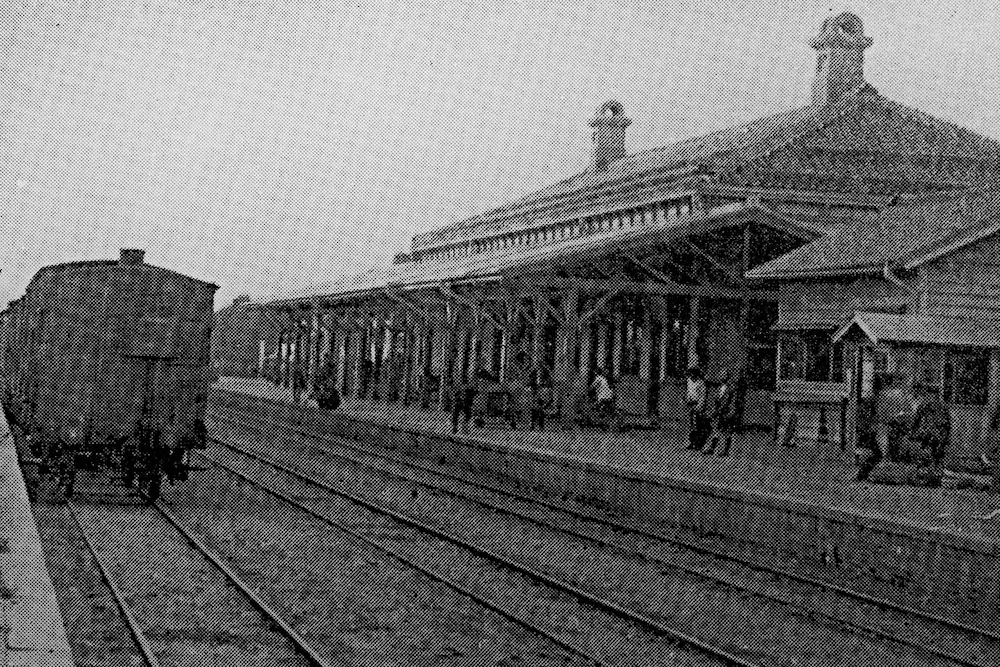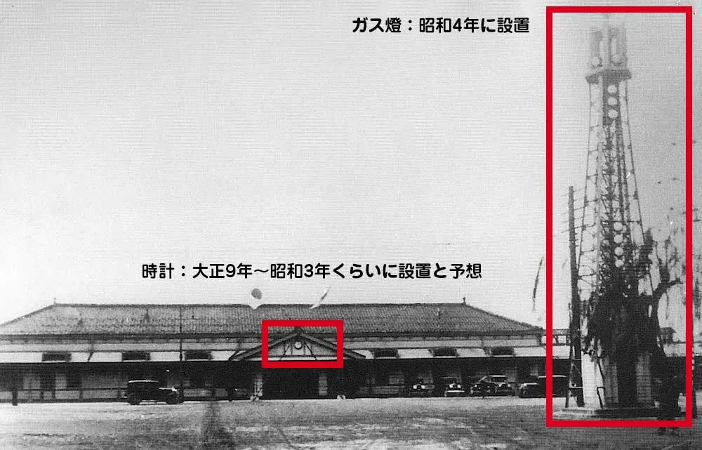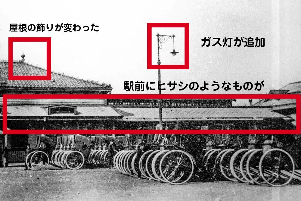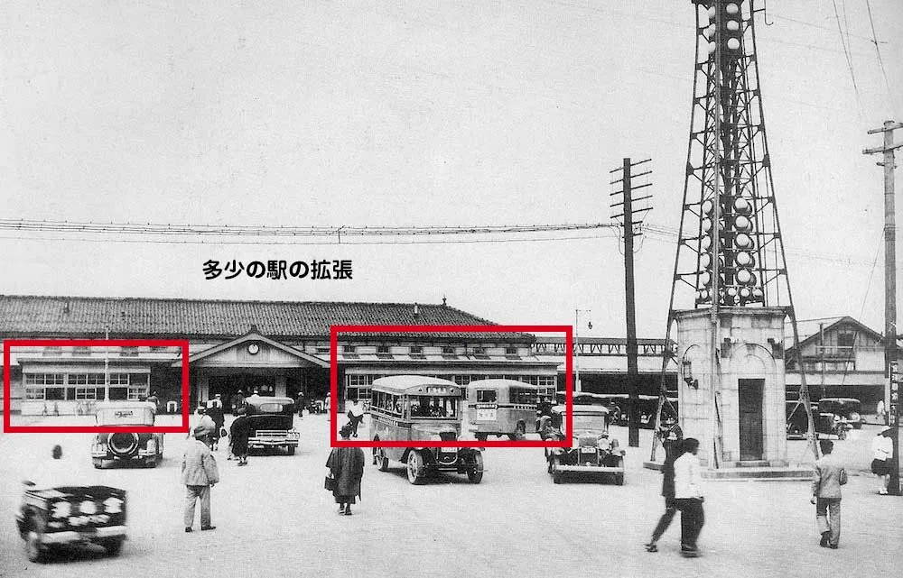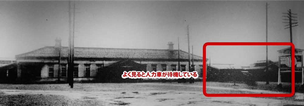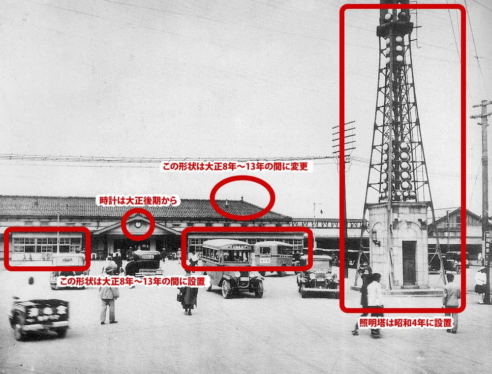 明治31年の開場当時の写真と比較すると駅前左右に建物が増えていることが伺える。